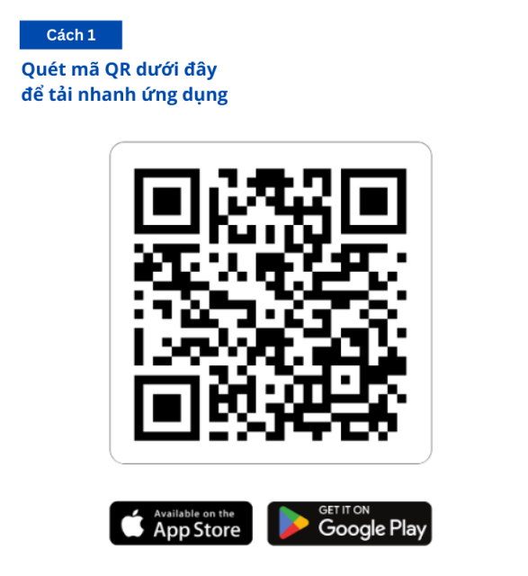 Quét mã QR hoặc tải trực tiếp từ App Store / Google Play