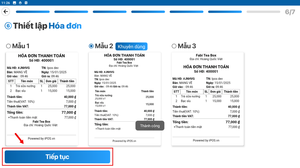 Bước 6: Chọn Mẫu in hóa đơn