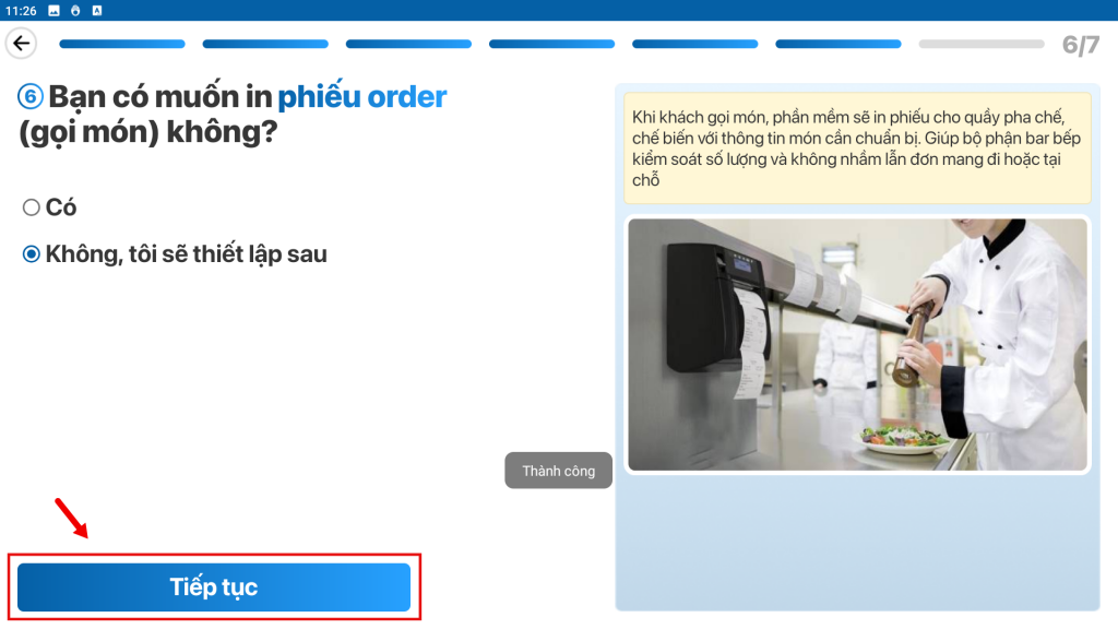 Bước 7: Thiết lập In phiếu order