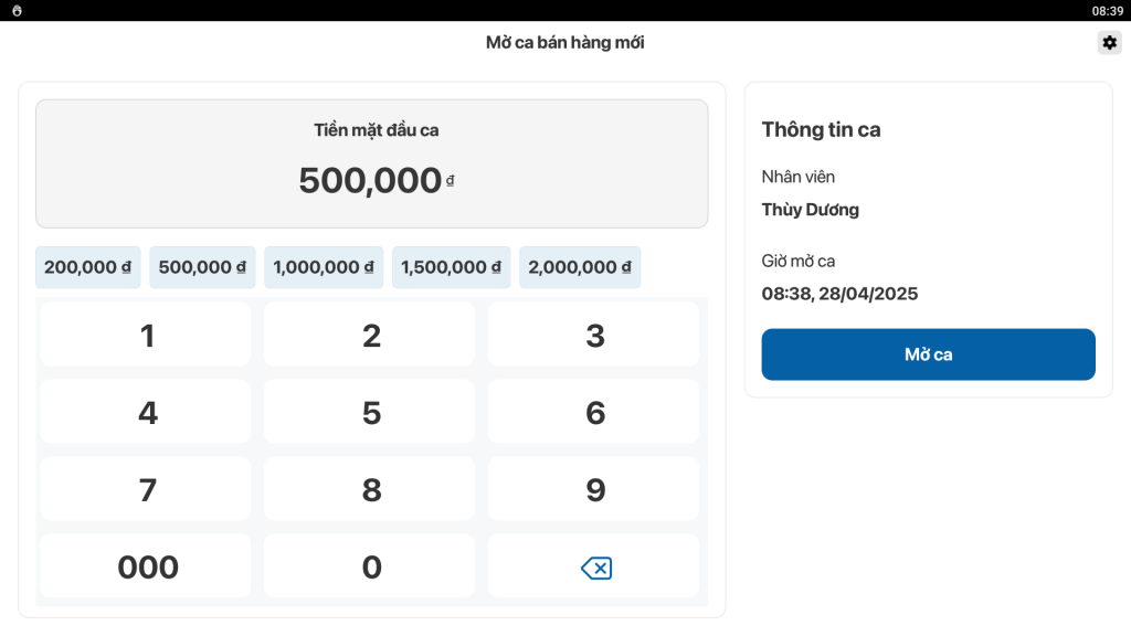 • Trường hợp 2: Đã có ca bán hàng được mở trước