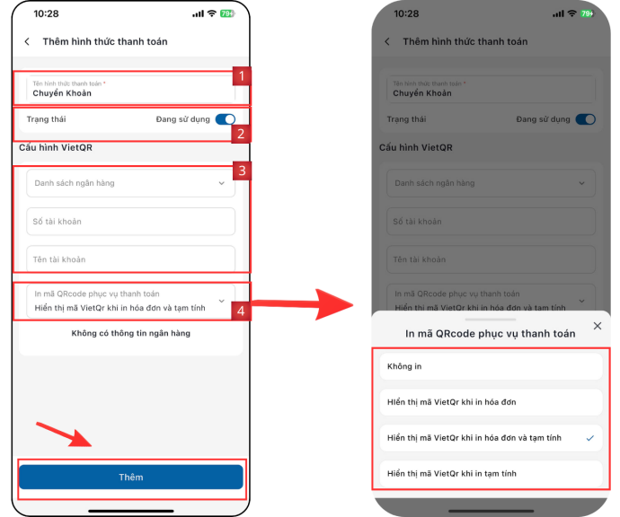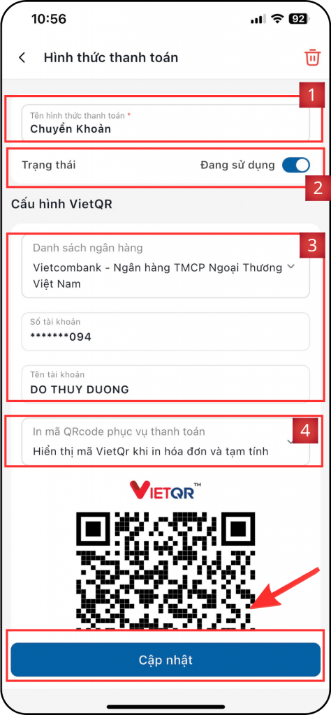 In mã QRcode phục vụ thanh toán: Chủ quán tùy chọn in mã QR khi khách thanh toán