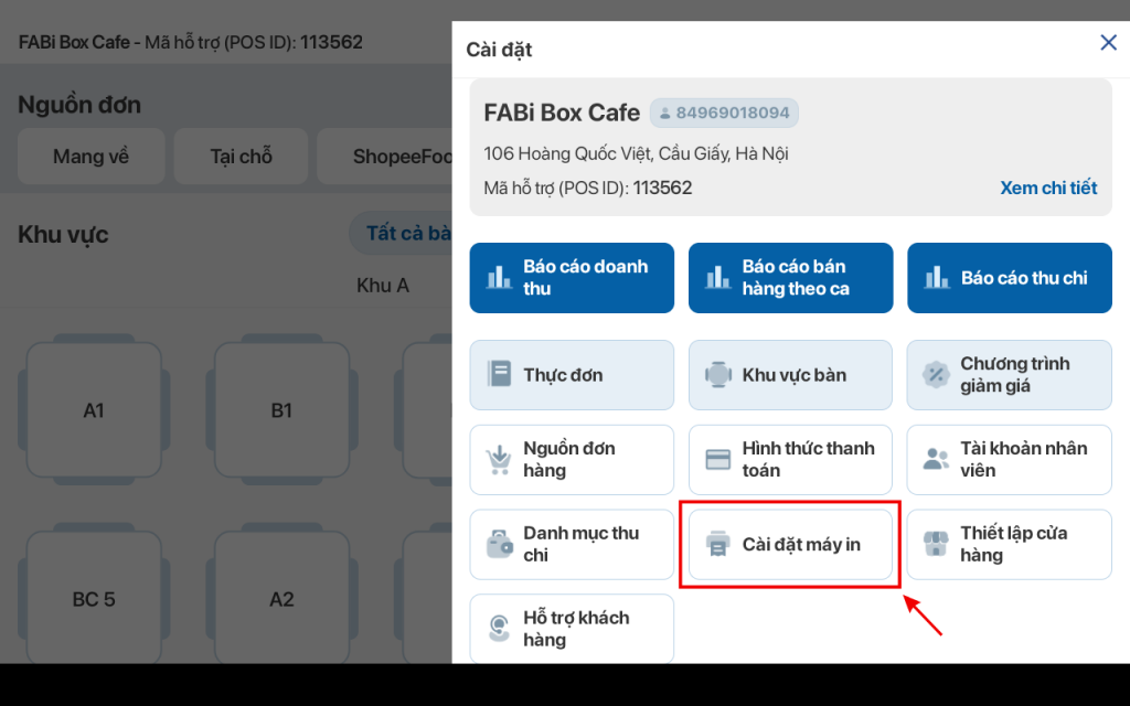 Bước 1: Tại giao diện Cài đặt → Cài đặt máy in → Chọn In hóa đơn