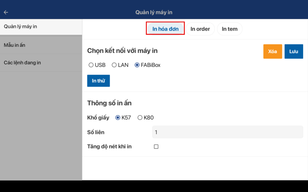 - Tăng độ nét khi in: tăng độ nét khi in hóa đơn