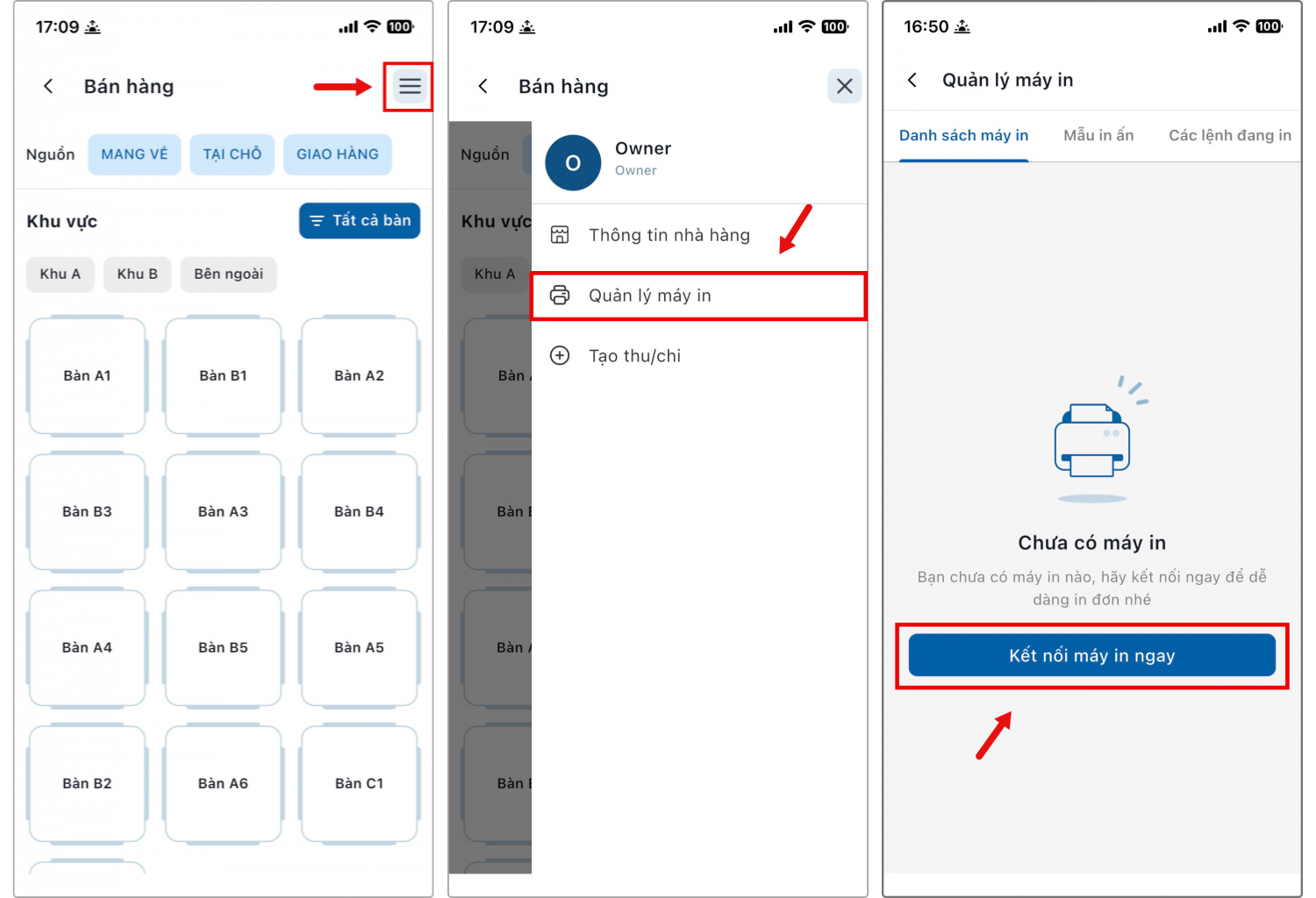 2: Kết nối In phiếu đặt đồ/phiếu order (bar/bếp)