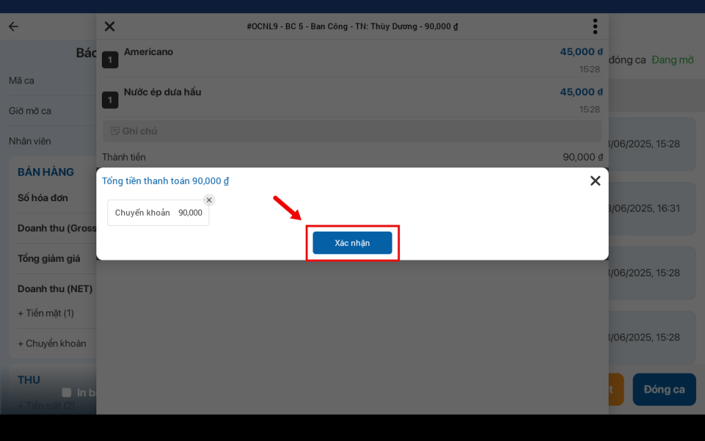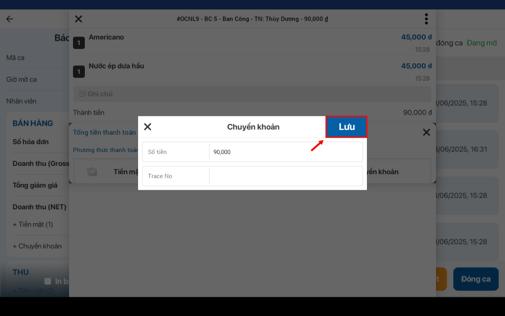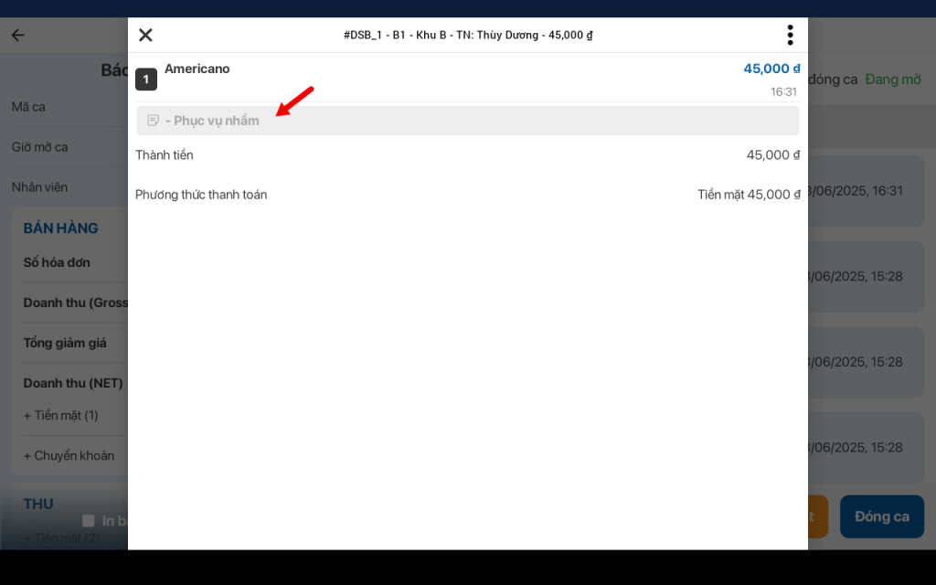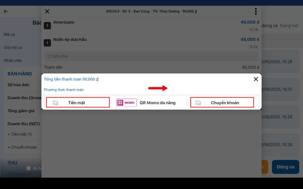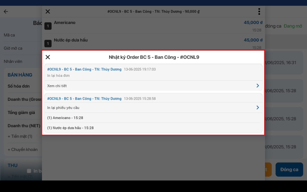 - Báo cáo chi tiết ca bán hàng